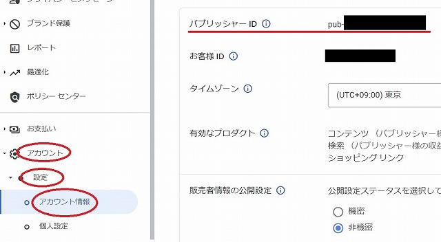 ここに書かれているpub-で始まる「パブリッシャーID」をメモしておきます。