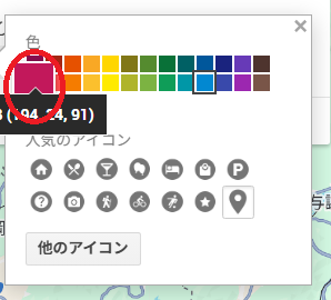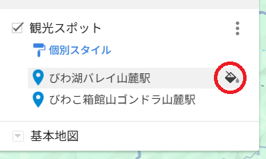 スポットを表す青色マークが見にくいため、赤色マークに変えます。