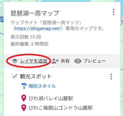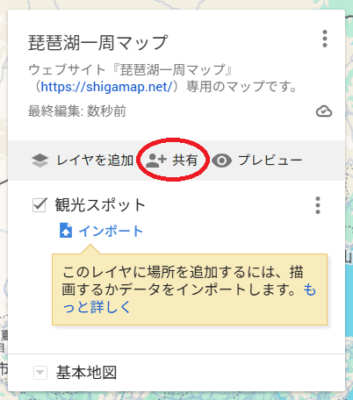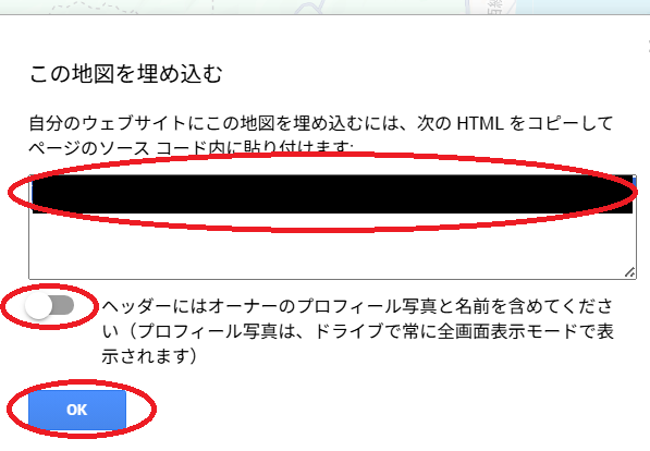 作成したマイマップを自分のサイトに埋め込む方法は、以下のとおりです。