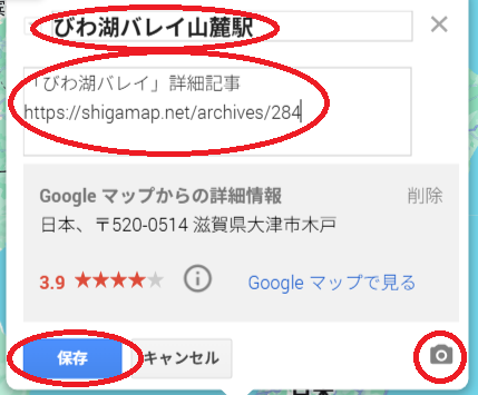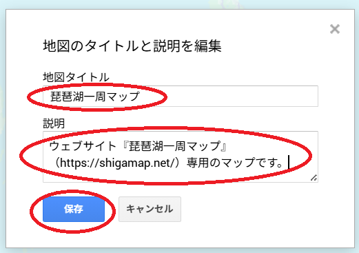 「地図タイトル」と「説明」を入力した後、「保存」をクリックします。