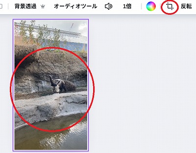 動画を選択した後、「切り抜き」アイコンをクリックする