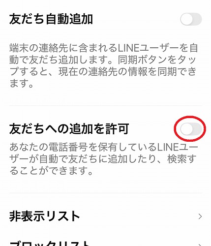 ここでは、自分の電話番号が勝手に相手の端末に追加され、メッセージが送られてくることを防ぎます。