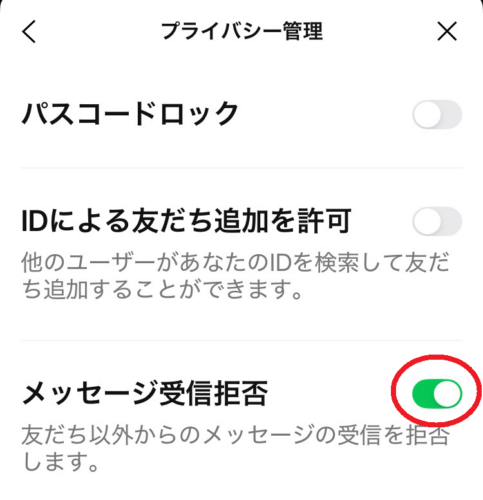 メッセージ受信拒否をONにします。