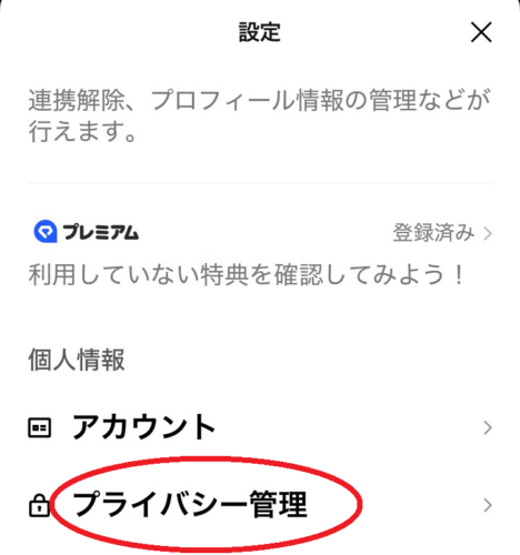 プライバシー管理をタップします。